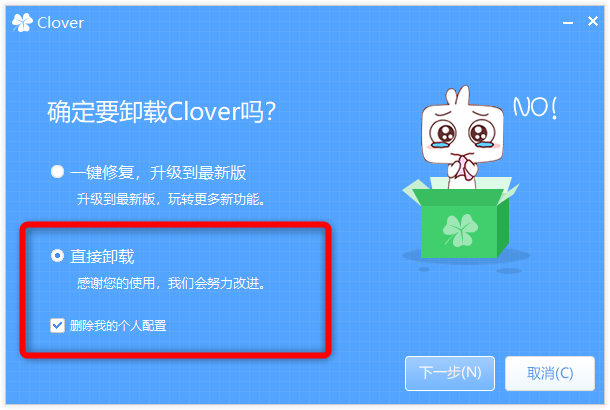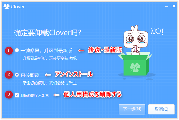 Cloverのアンインストール画面が表示されます。