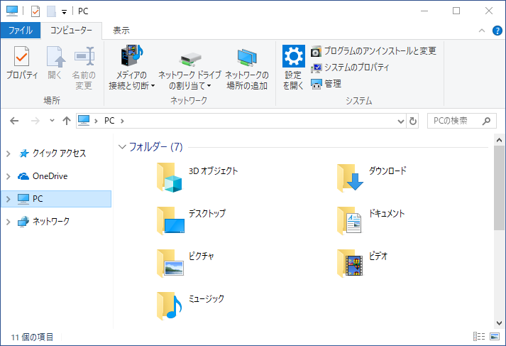 これで、通常のエクスプローラーが表示されるようになります。