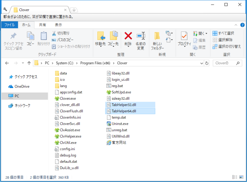 「Clover(クローバー)」というエクスプローラーをクロームのようにタブ表示させることができる便利なソフトをインストールしてみたのですが、