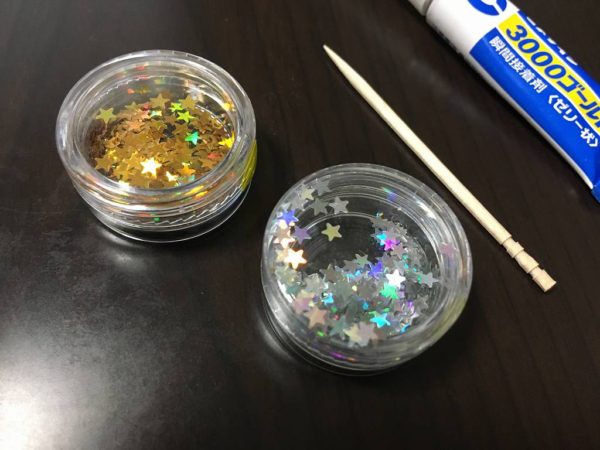 今回はキラキラさせたかったのでグリッターにしましたが、シールのほうがより簡単できれいにはれるかもしれませんね。