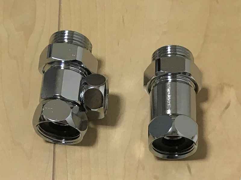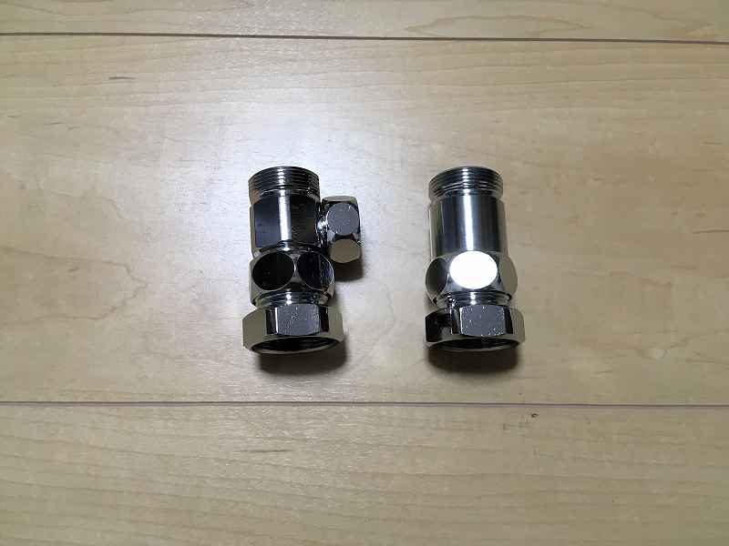 こんな感じで、二つの工具を使って分岐水栓のアダプター、ソケットの変換作業を完了させます。