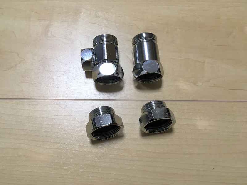 私が買った分岐水栓は、最初から経口サイズの変換ができるように部品がついていました。