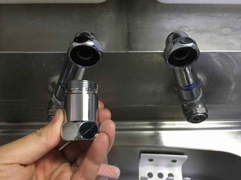 取り外した水栓に分岐水栓を取り付ける作業に進みます。