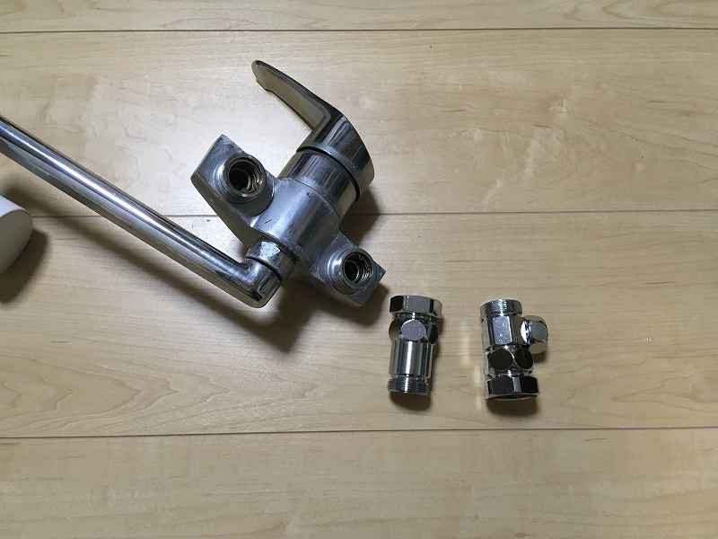キッチンの水栓に適合する分岐水栓を用意できたら分岐水栓を取り付けます。