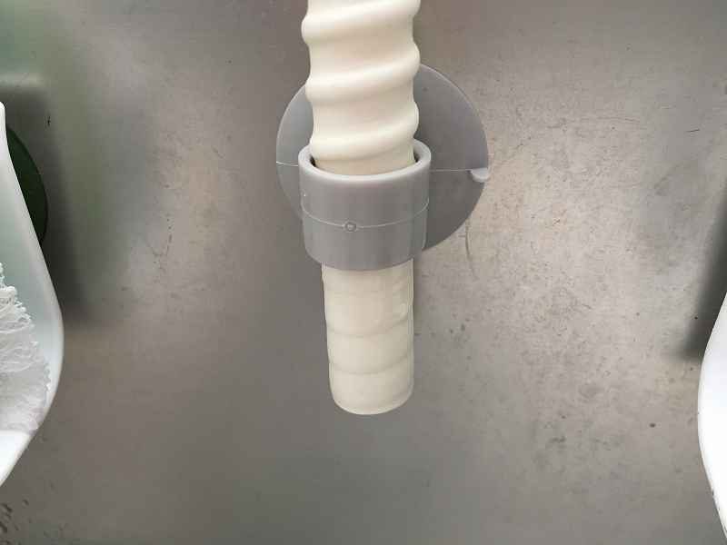 排水用は差し込んで付属の部品で挟んでとめます。