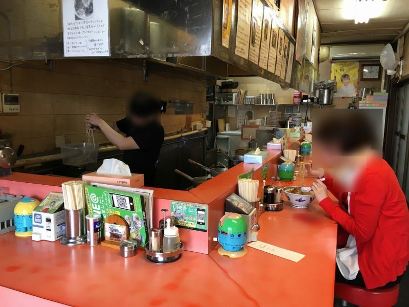 お店の席は、カウンター席のみになっているようです。みんなラーメンを黙々と食べてお店をでていきますw