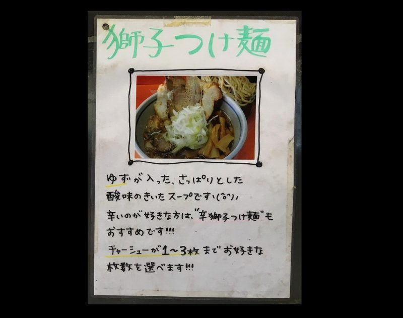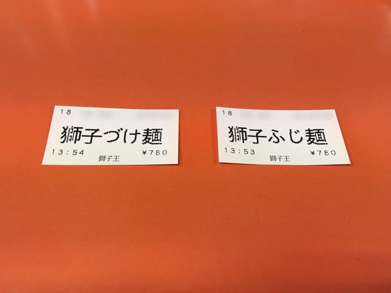 お店に入って今回は何を食べようか悩みましたが「獅子ふじ麺」と「獅子づけ麺」を食べることにしました。(今回は、妻と食べに行っています)