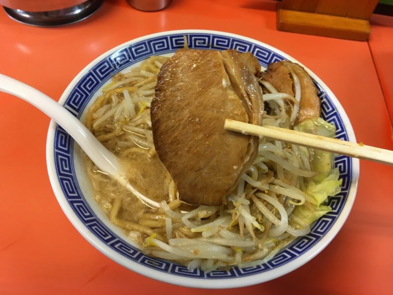 とにかく麺も野菜もチャーシューもデカ盛り、パンチの効いたスープが癖になります。