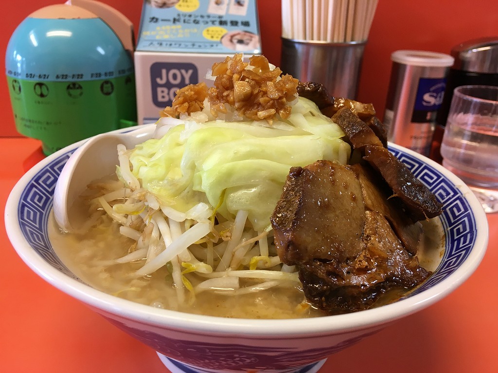 とにかく麺も野菜もチャーシューもデカ盛り、パンチの効いたスープが癖になります。