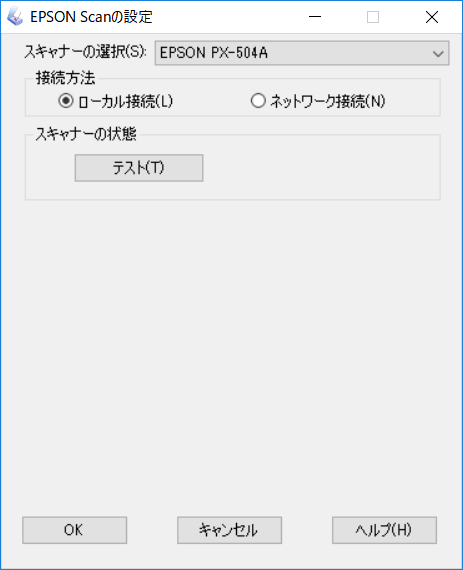 EPSON Scanの設定で「ローカル接続」「ネットワーク接続」を試してみる。