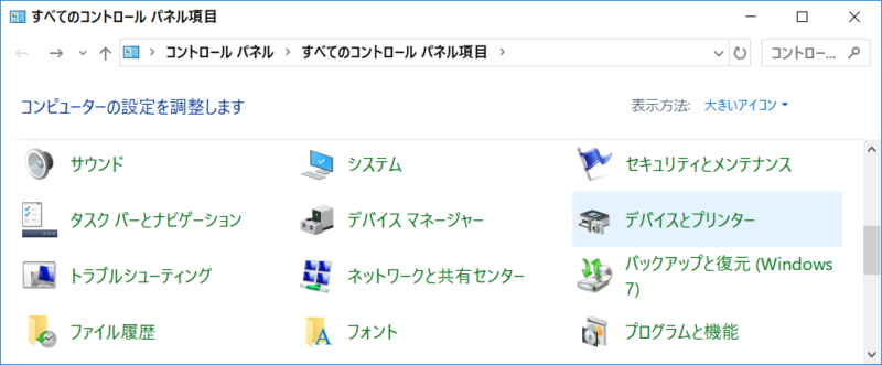 コントロールパネルから「デバイスとプリンター」を選択する。