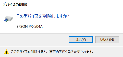 「このデバイスを削除しますか?」と表示されるので「はい」を選択します。