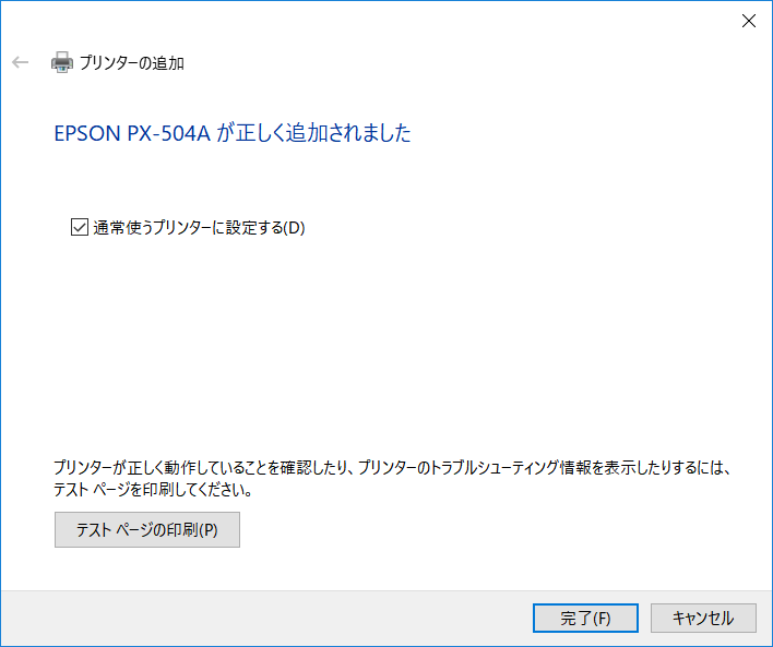 これでプリンターデバイスの追加が完了します。