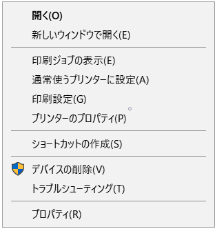 追加したデバイス(プリンタ)を選択して右クリックします。