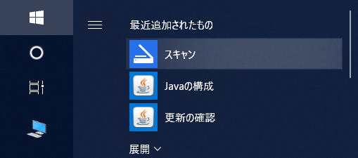 ソフトの起動の仕方は、Windowsのメニューからインストールしたソフト「スキャン」を選択して実行します。