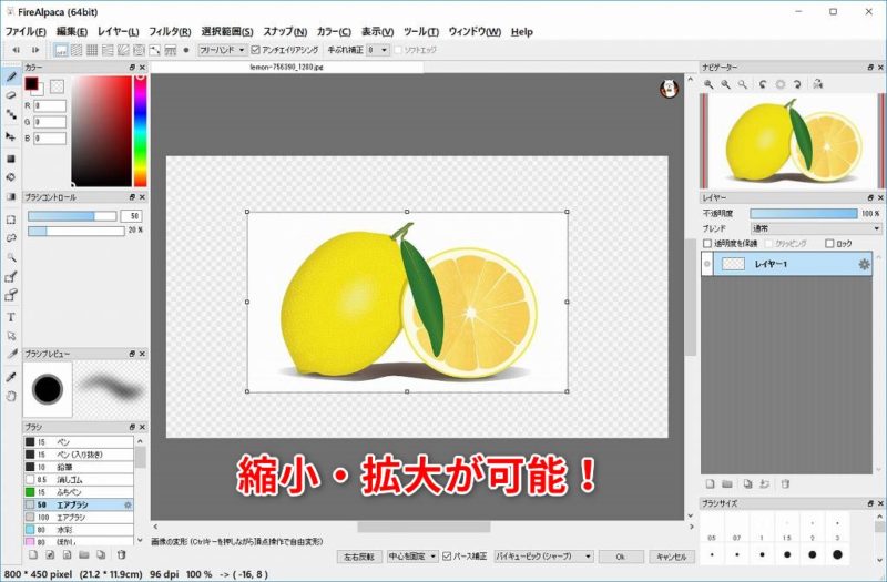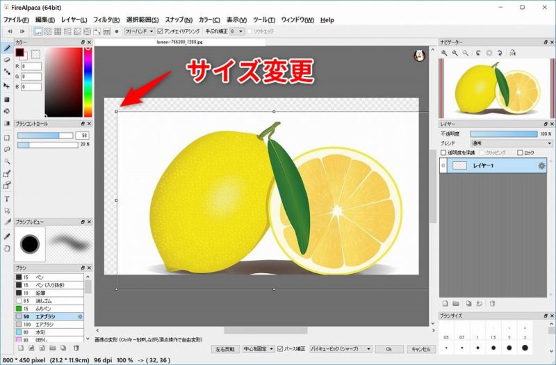 FireAlpacaでレイヤーのサイズを変更する方法(画像・拡大・縮小・回転)