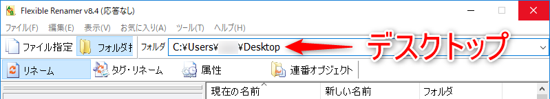 「Flexible Renamer」が正常に起動しても、デスクトップを再び参照したり、次回起動時に表示するフォルダパスが存在しない状態になった場合、また同じ問題が発生してしまうので注意しましょう!