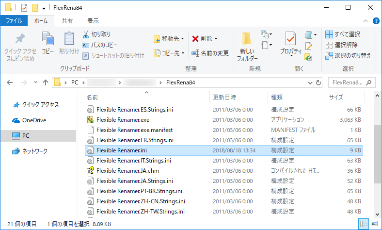 フォルダパスの設定は「Flexible Renamer.ini」ファイルの記述を変更して設定します。