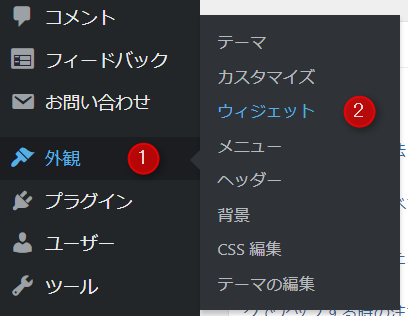 ダッシュボード → 外観 → ウィジェットと進みます。