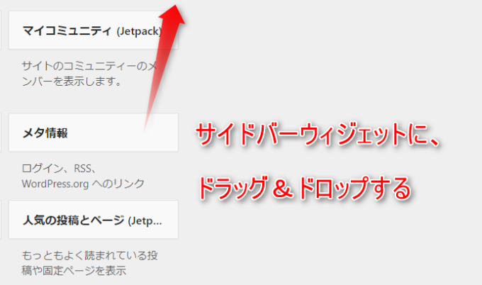 メタ情報をドラッグ&ドロップして、サイドバーウイジェットに追加します。