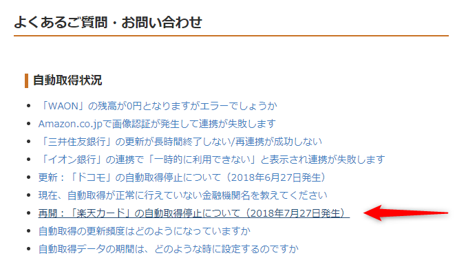 そして、自動取得の再開については、本FAQにてお知らせしますとなっています。