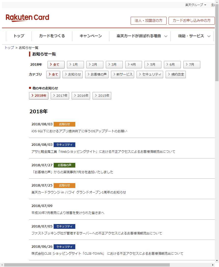 楽天カードに限らず、何かあったらこの項目を確認すると良さそうです!