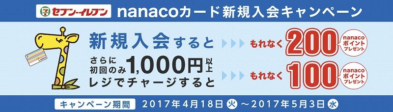 キャンペーン期間中、セブン-イレブン店頭にてnanacoカードに新規ご入会いただくと