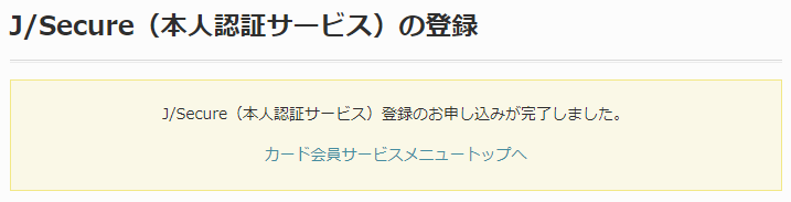 J/Secure(本人認証サービス)登録のお申し込みが完了します。