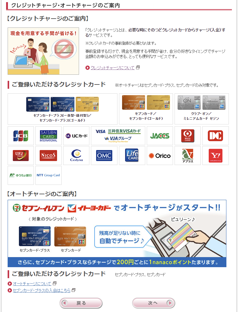 クレジットチャージ|電子マネー nanaco 【公式サイト】