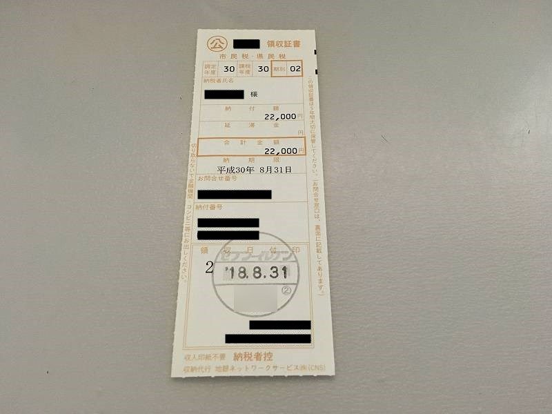 レシートと納付書の領収証書を受け取って、税金の支払い完了です!
