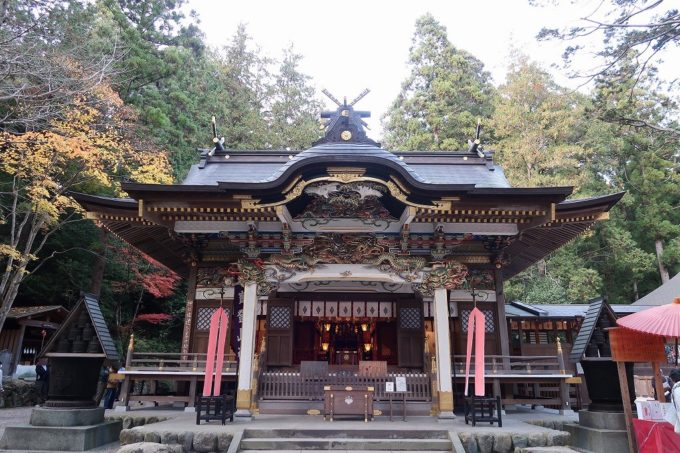 宝登山神社は、長瀞駅から歩いて10分くらいの所にあります。とても大きい神社で立派です。鳥居と紅葉が良い感じでした。