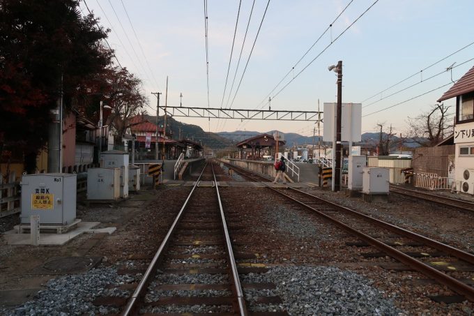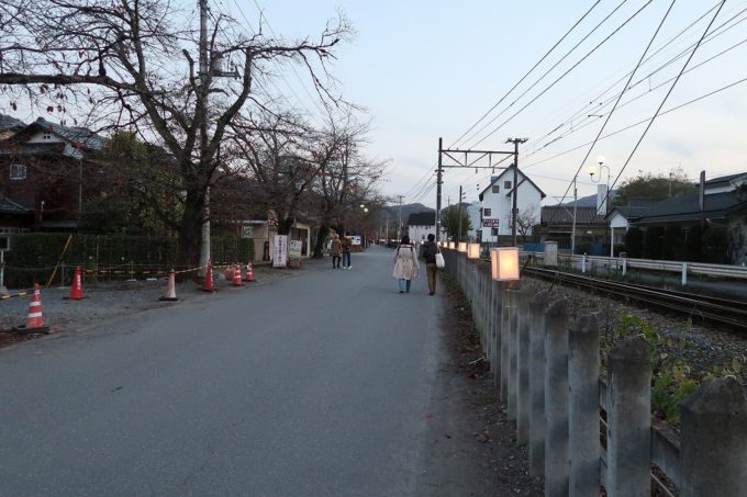 岩畳から長瀞駅に向かって、駅の踏切を手前で左折し上長瀞駅方面へ歩いていきます。