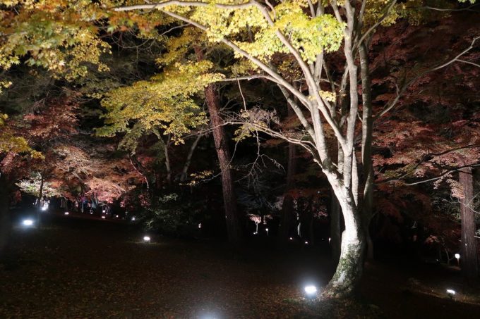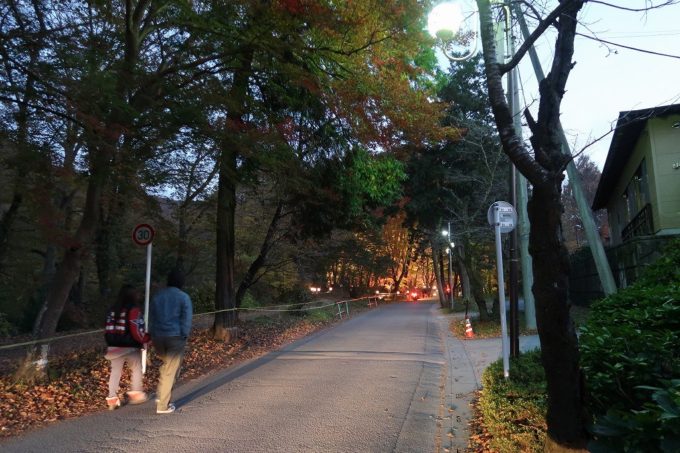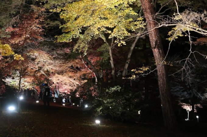 昼とは違った夜の紅葉を楽しむことができました。満足したので駐車場目指してまた歩きます。
