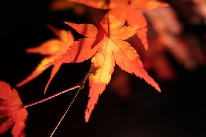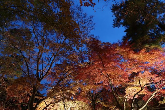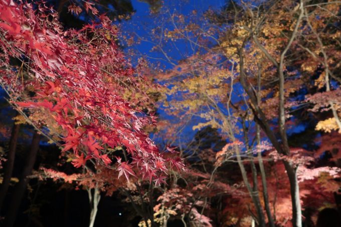 まだあたりは真っ暗になっていない状態で、夕闇の紅葉も良い感じです!