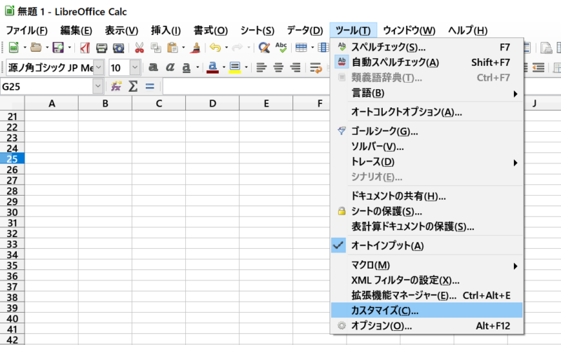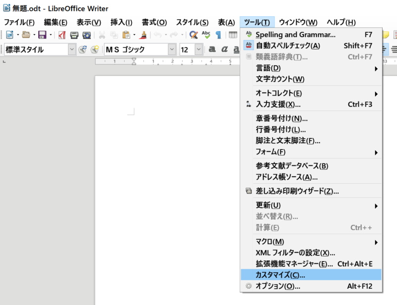 最初に「Calc」で手順を説明しますが、「Writer」でも同じ操作で設定を変更することができます。