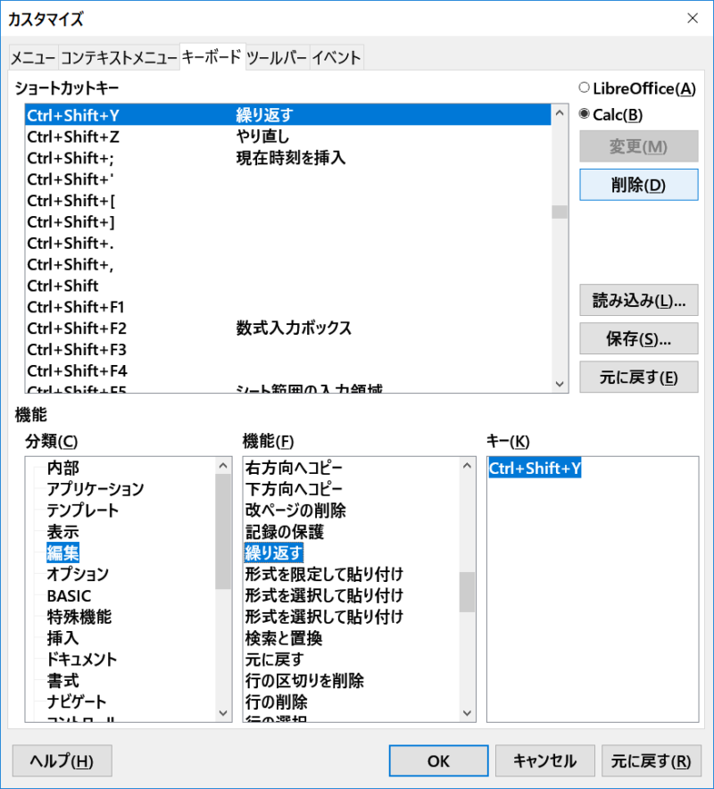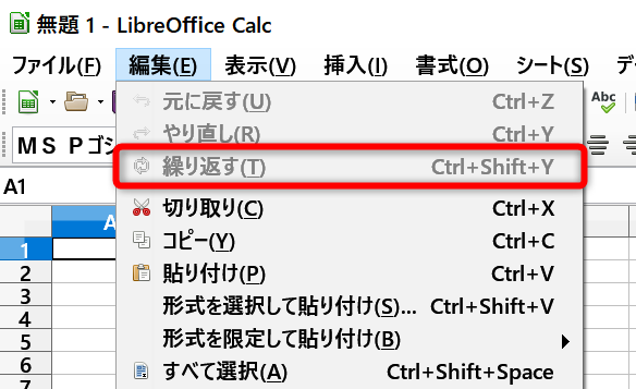 これが「Libre office」「Open office」だと「繰り返し」操作のショートカットキーの割り当てが「Ctrl + Shift + Y」になっていて押すのがめんどくさいです!