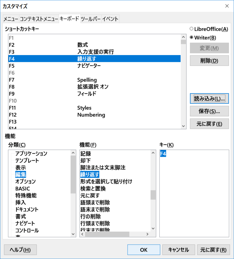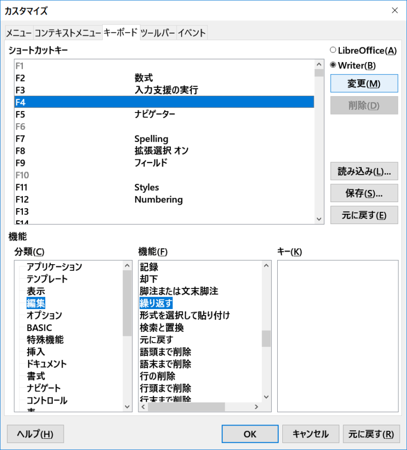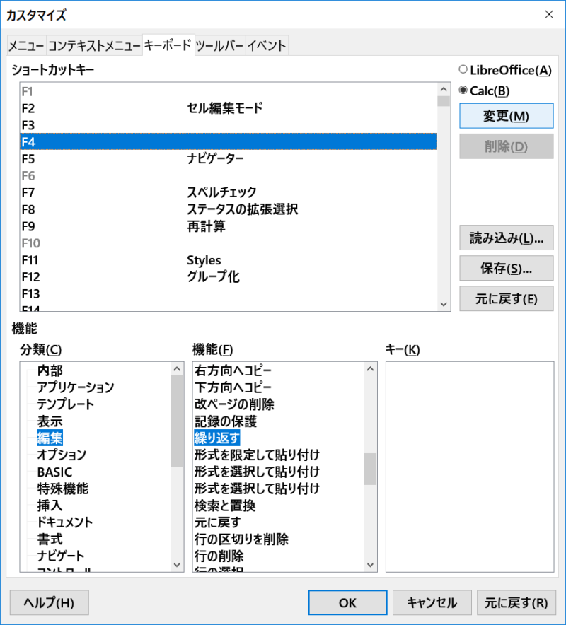 「Calc」「Writer」でF4で繰り返しできるように設定する!