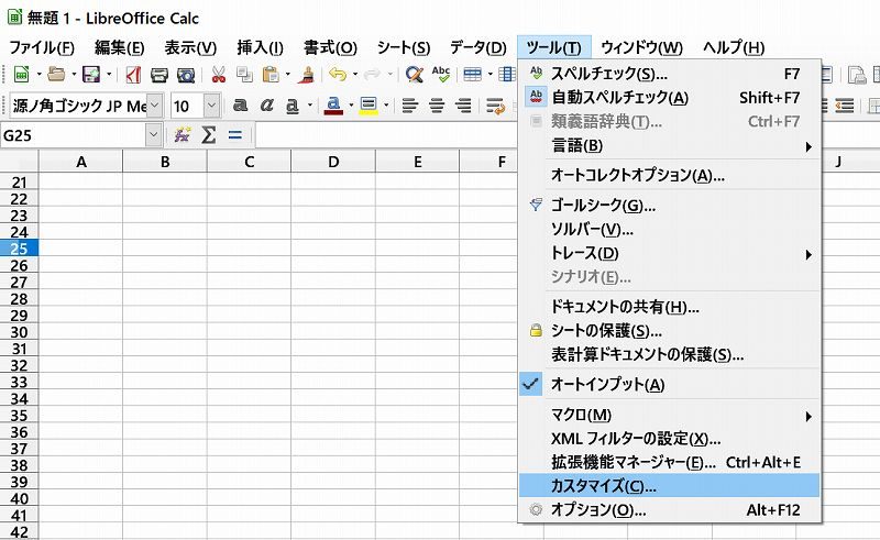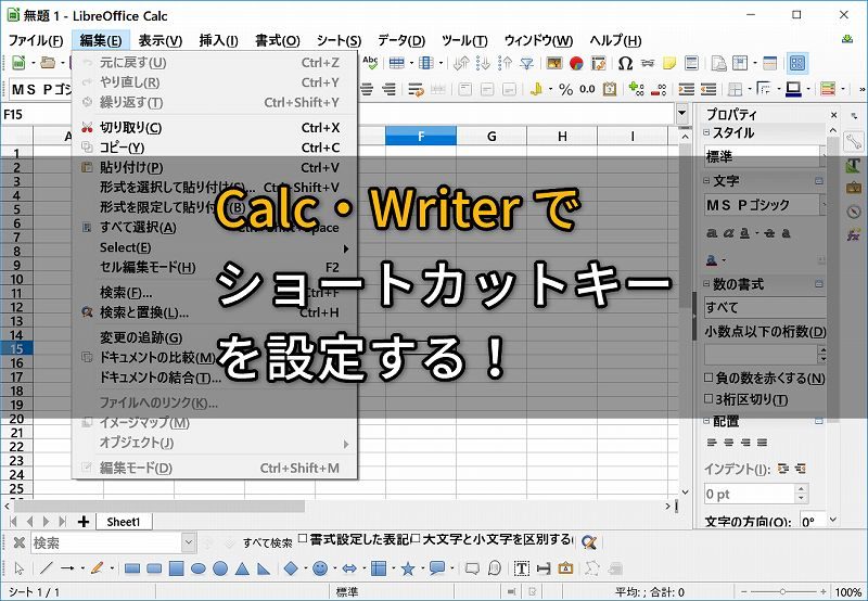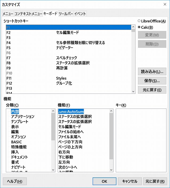 Calcで、ショートカットキーを設定する方法