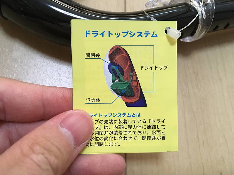 機能によっては「ドライトップ(浸水防止弁付き)」や「排水弁付き」と呼ばれる機能を持ったスノーケルもあり、