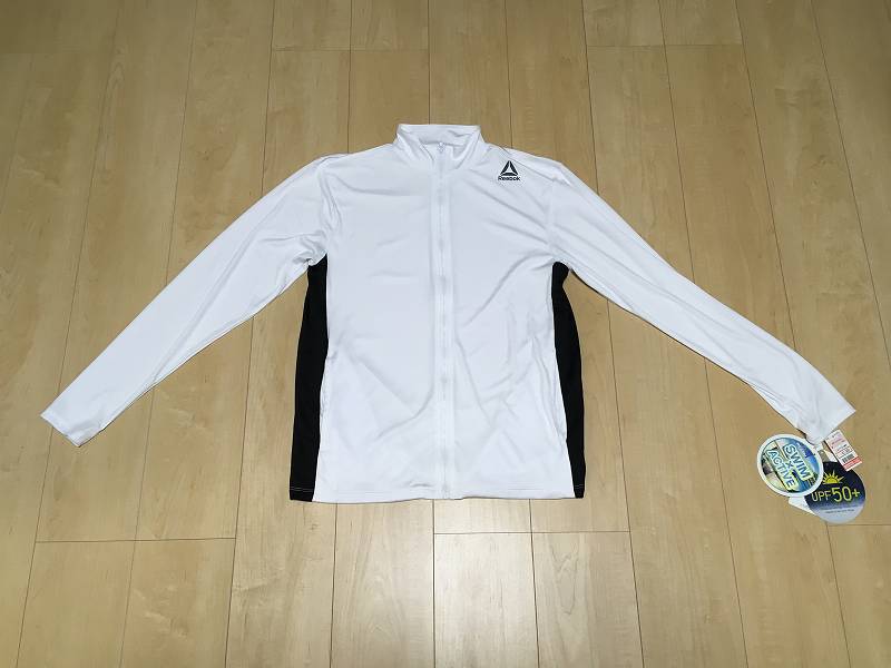 ラッシュガードは、ぷらっとしまむらに立ち寄った時にリーボックのシンプルなデザインのラッシュガードが売っていたので購入しました!